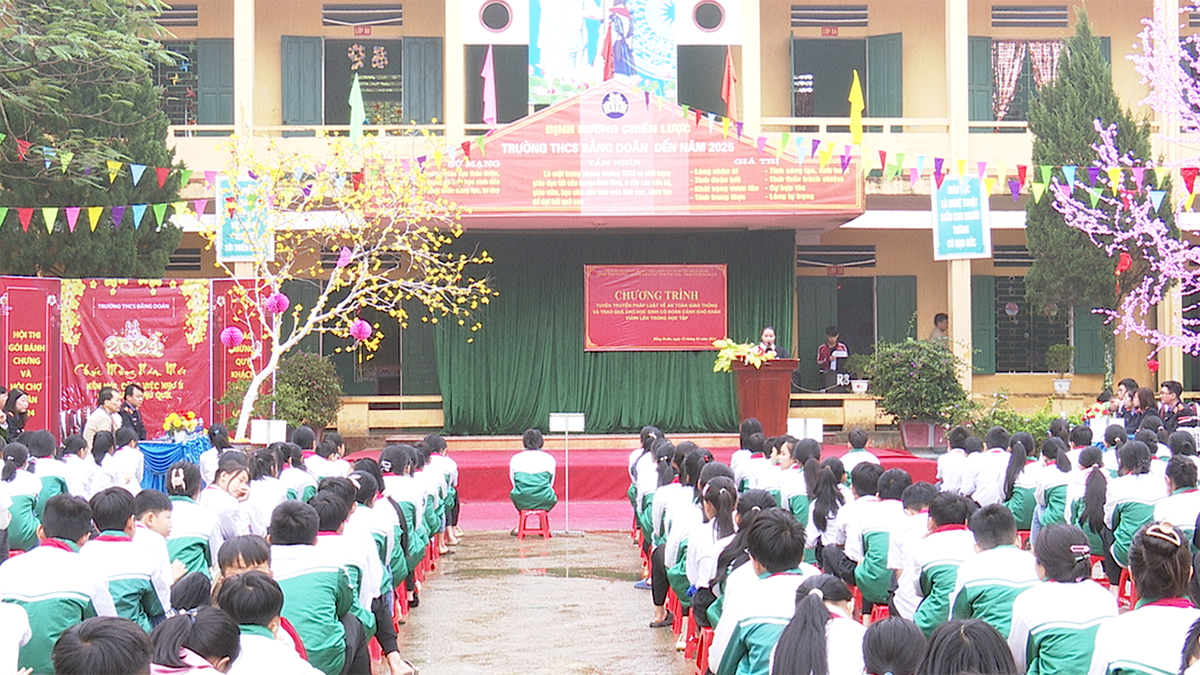 | Quang cảnh buổi tuyên truyền pháp luật về ATGT tại trường THCS Bằng Doãn |