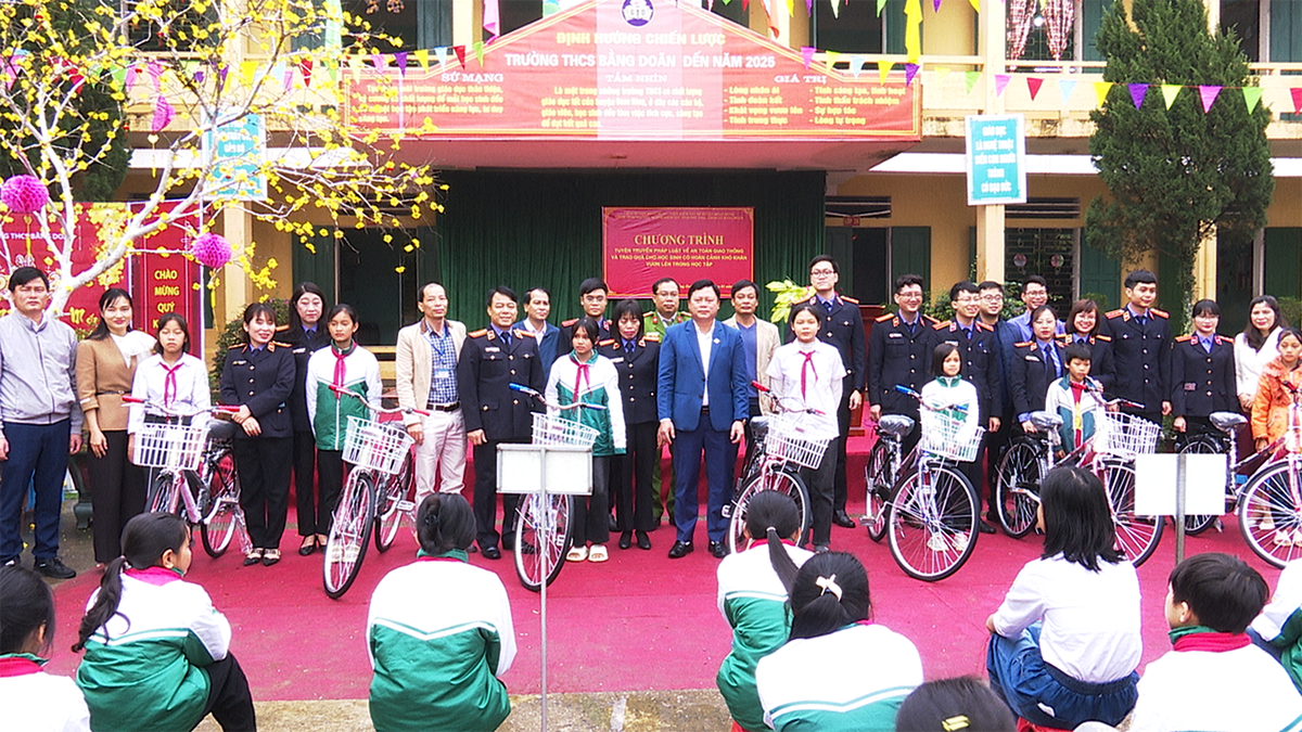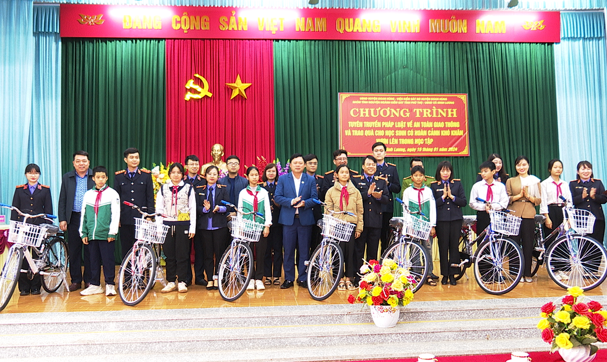 Nhân dịp này, CLB tình nguyện Kiểm sát tỉnh Phú Thọ và Công đoàn Viện kiểm sát nhân dân xã Đoan Hùng đã trao tặng 14 xe đạp cho các em học sinh của 3 nhà trường có hoàn cảnh khó khăn vươn lên trong học tập với tổng giá trị gần 30 triệu đồng, trong đó trường Tiểu học Bằng Doãn có 03 em, trường THCS Bằng Doãn 04 em và trường THCS xã Minh Lương 07 em