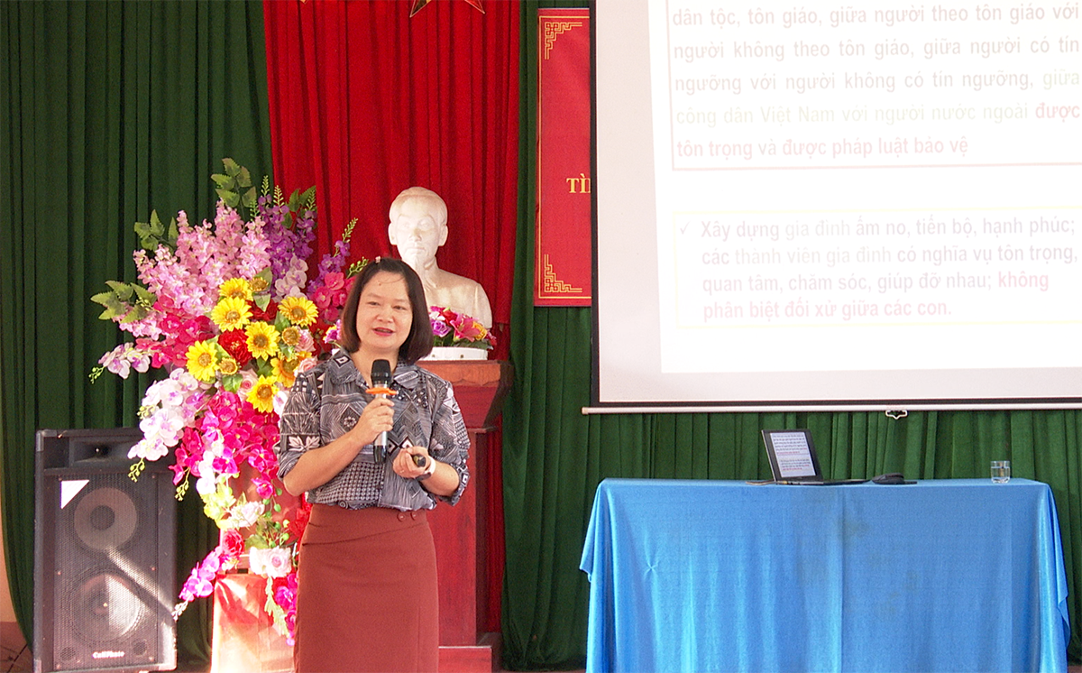 | Giảng viên của Trường Chính trị tỉnh Phú Thọ tuyên truyền về hậu quả của việc tảo hôn, hôn nhân cận huyết thống |